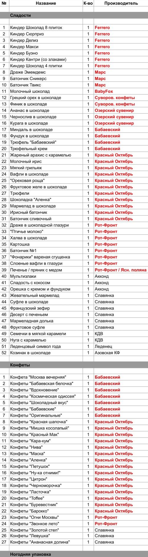 1. Проверить, можно ли внести изменения в состав подарка. Если нет, то скорее всего наборы были собраны еще летом из конфет, произведенных еще раньше